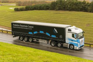 So far we have applied the new graphics to two tractor units, one blue trailer with the Predictive Powertrain Control installed and two additional trailers.